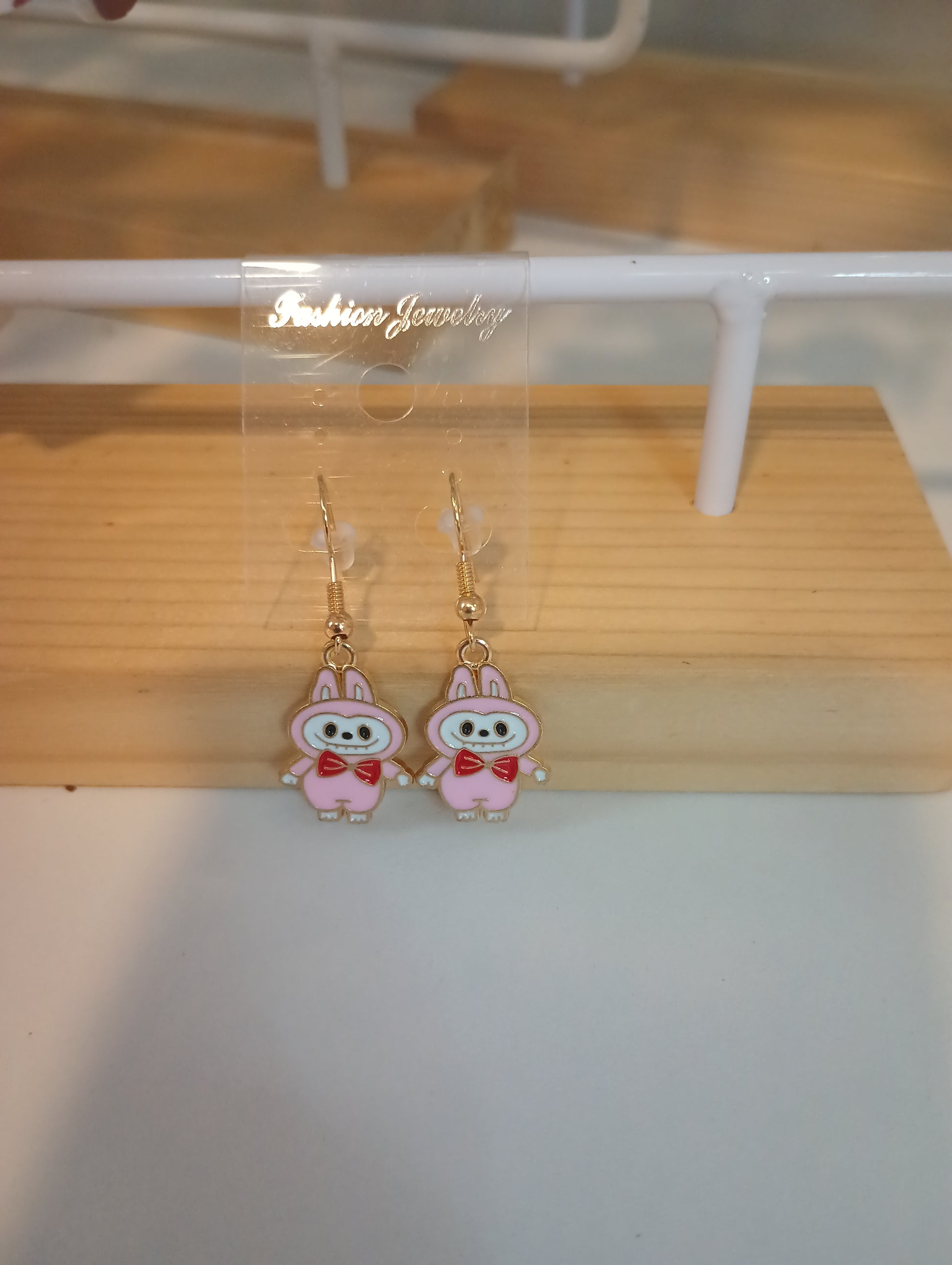 Labubu light pink with red earrings